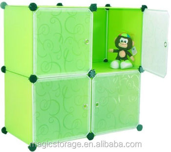 Multi uso DIY de almacenamiento de plástico de 4 cubos de gabinete con puerta para juguetes